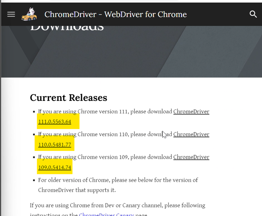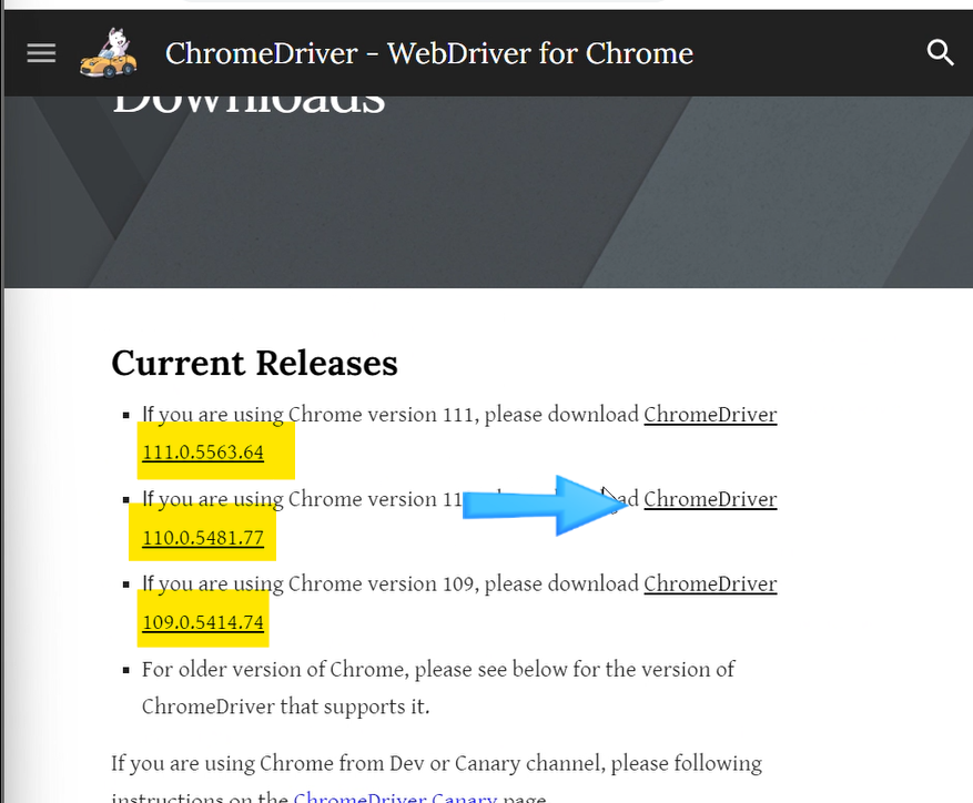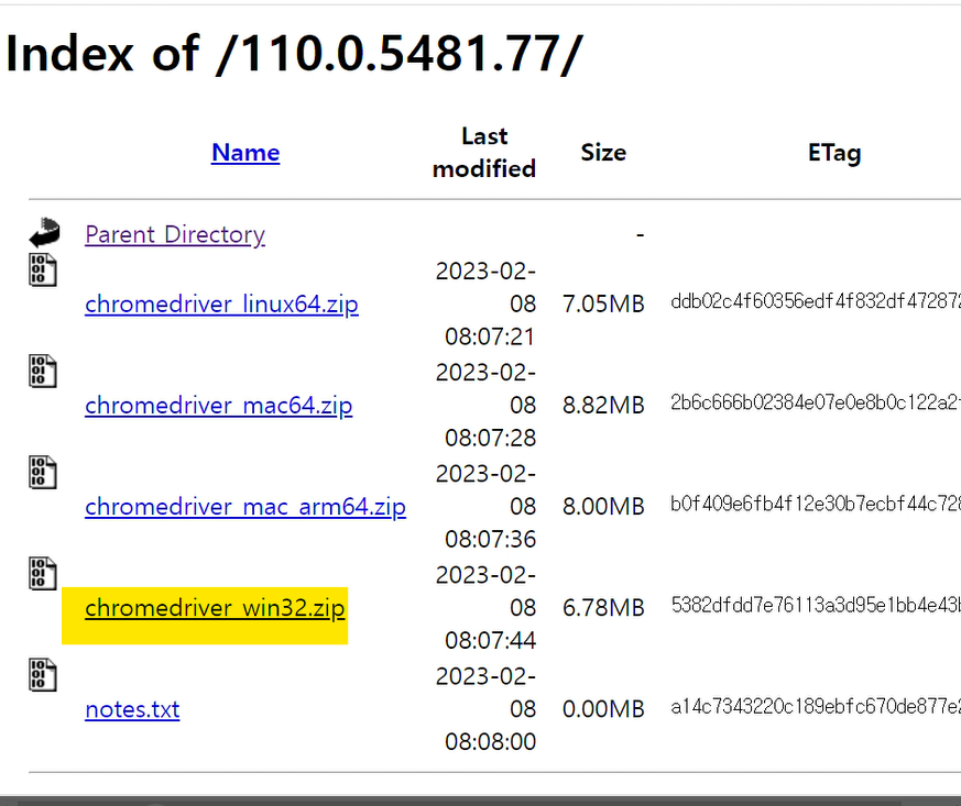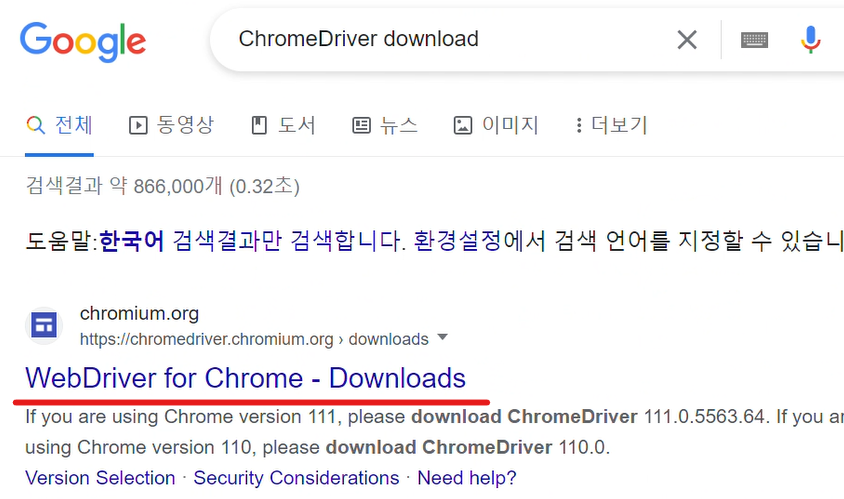 구글에 ChromeDriver download를 검색해서 젤 첫번째로 나오는 사이트로 ㄱㄱ