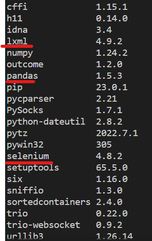 pandas, selenium, lxml 이렇게 세개를 설치 해 줍니다.