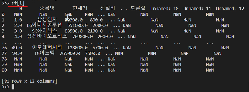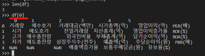 df[0]은 목록이 저장된 테이블인것 같습니다.