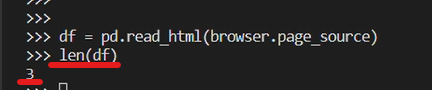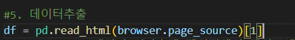 df = pd.read_html(browser.page_source)[1] 추가해 줍니다.