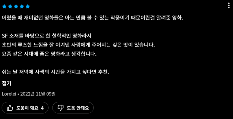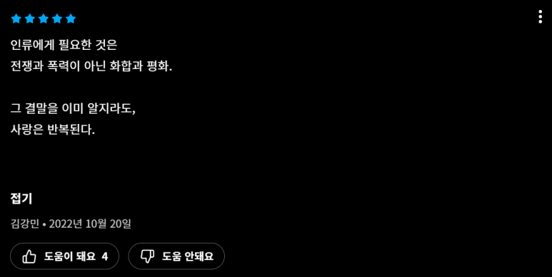 스토리는 정해져 있으되 느끼는 바가 다르다고 생각합니다.