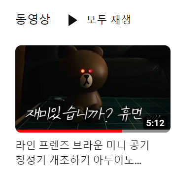 오늘은 네이버 라인의 캐릭터 브라운을 개조해 보겠습니다 ㅎㅎㅎ 결과부터 보여 드리자면!! 예전에 이벤트 참여해서 받은 사은품으로 라인 프렌즈 미니 공기청정기를 받았는데요 이걸 사용했