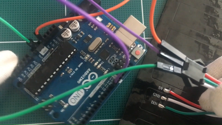 우노 보드에 업로드를 완료하면 그 자체로도 불이 켜지지만