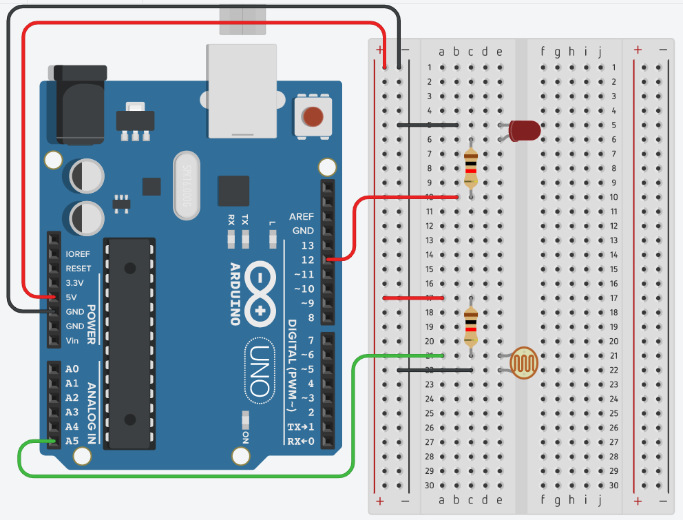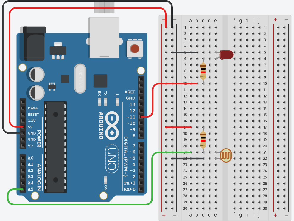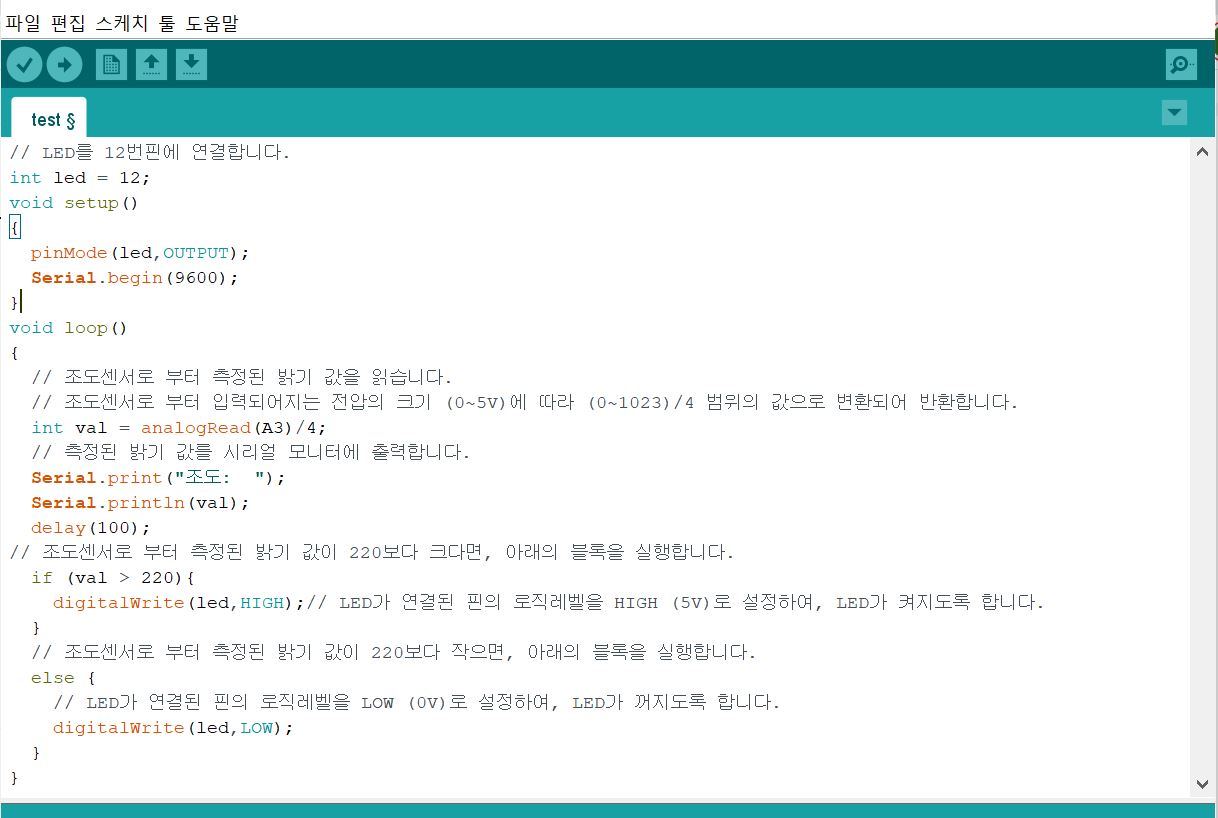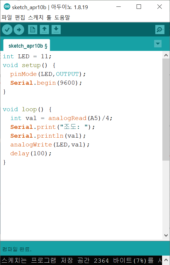 5) 주변이 어두워지는 만큼 LED밝아지기 (아날로그 출력)