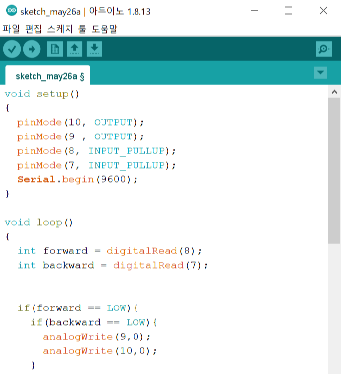 3) 스위치를 이용하여 모터 방향 바꾸기