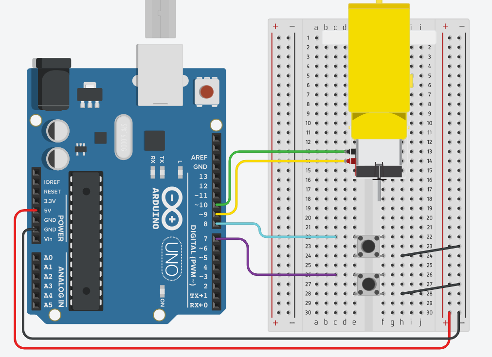 5) 버튼 두개를 연결하여 기어드모터 방향 바꾸기