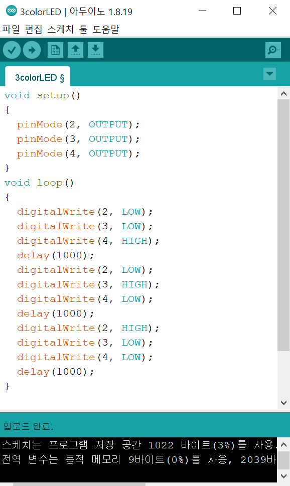 3) 3색 LED 켜기 과정영상