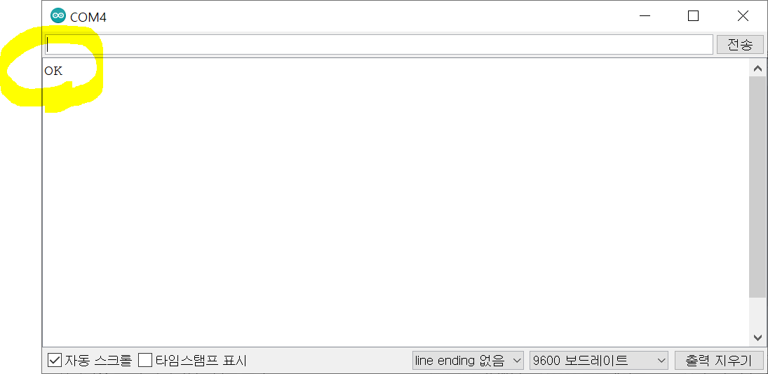 AT 을 입력하면 OK가 출력되는걸 보실수 있습니다.