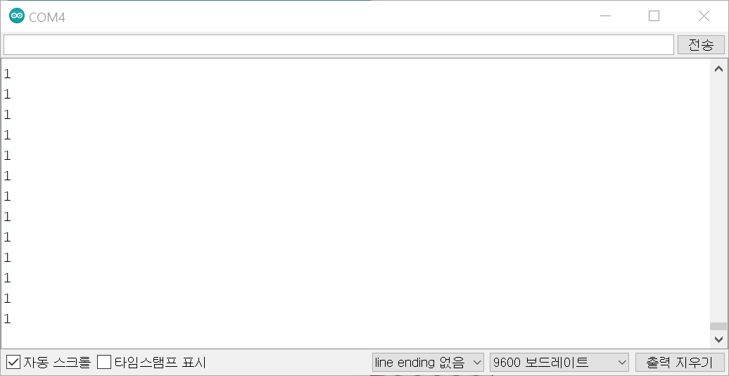 시리얼통신으로 메시지를 보내면 모바일에서 출력하고