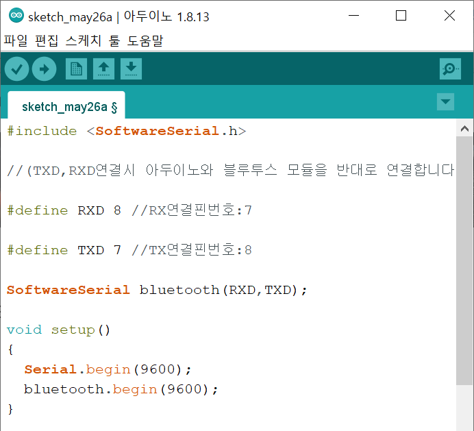 // TXD,RXD 연결 시 아두이노와 블루투스 모듈을 반대로 연결합니다.