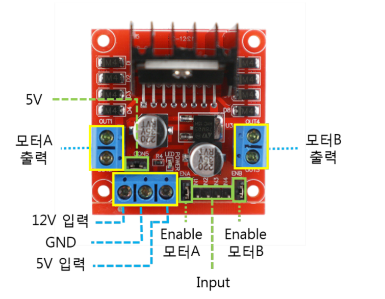 !---- 5V 로 사용할 때는 ENA / ENB pin 에 점퍼핀을 꽂아주세요! ----!