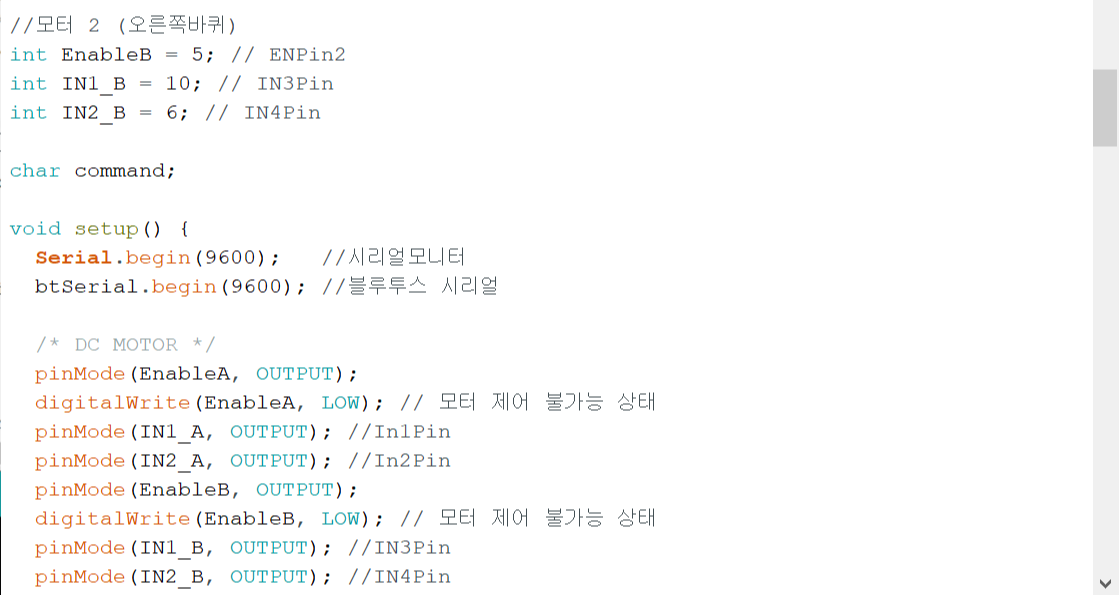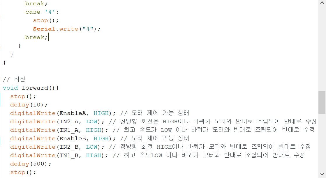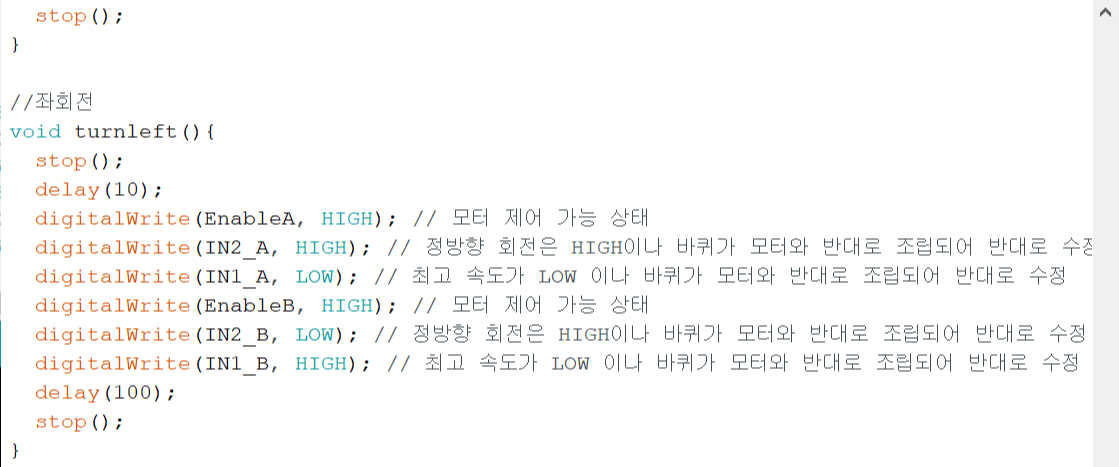 전진 / 후진 / 좌회전 / 우회전 / 정지 함수만들어 사용하기 리모컨으로 제어 모터드라이버로 DC모터 제어하기 (tistory.com) 모터드라이버로 DC모터 제어하기 11. DC모터 사용하기 (tistory.com) 11. DC모터