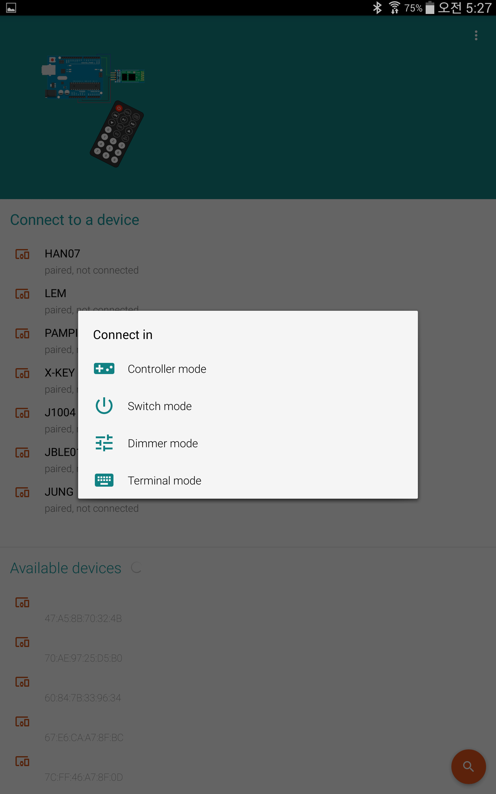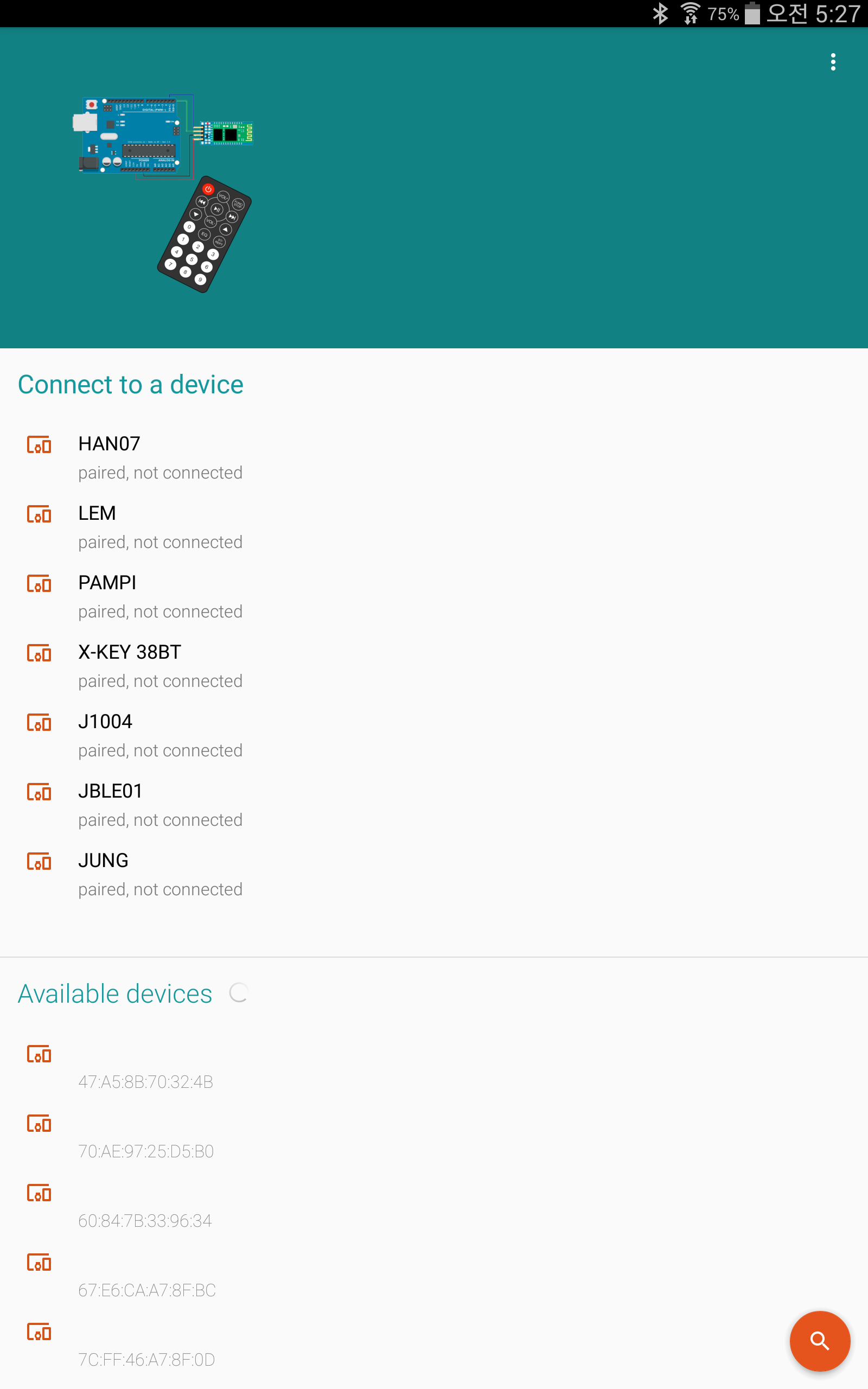 블루투스 어플을 열고 RC카의 블루투스와 연결합니다.