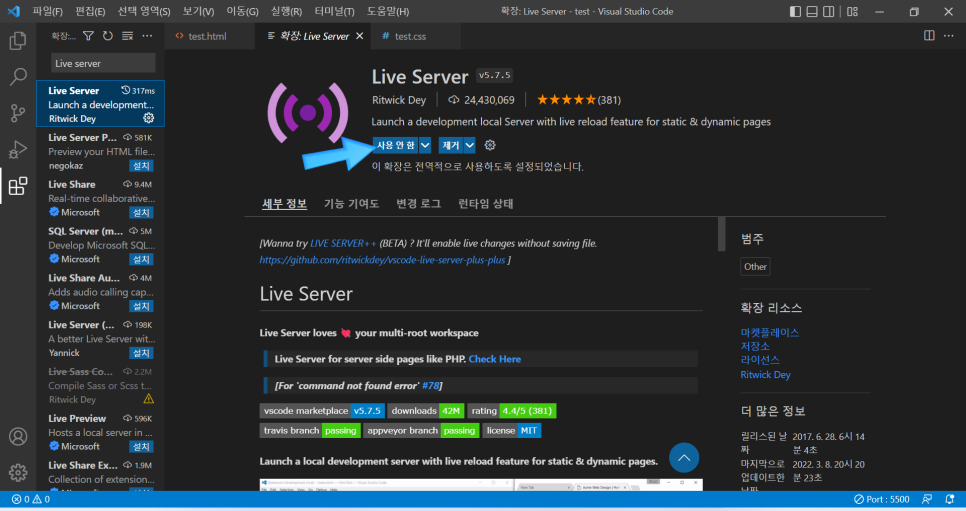 (제거는 이미 설치완료 되어 있어서 사용 안함으로 뜨는것 이기 때문에 신경 노노)