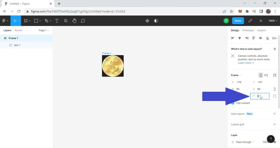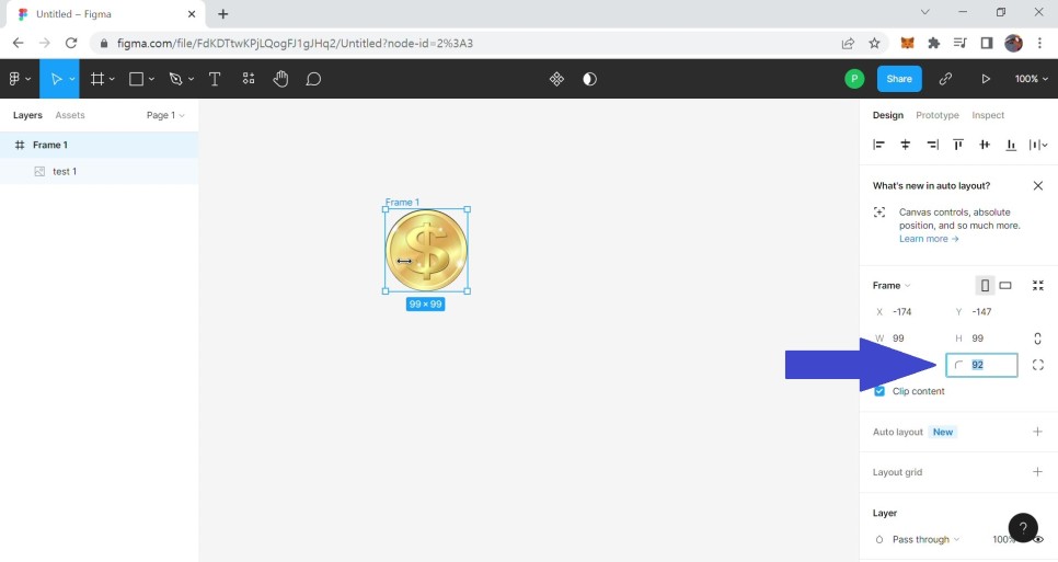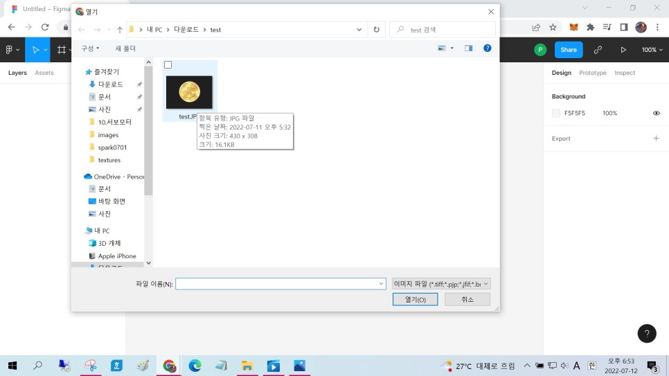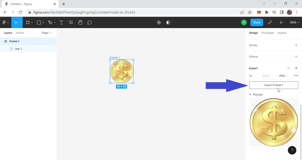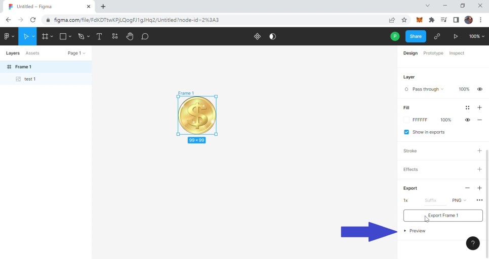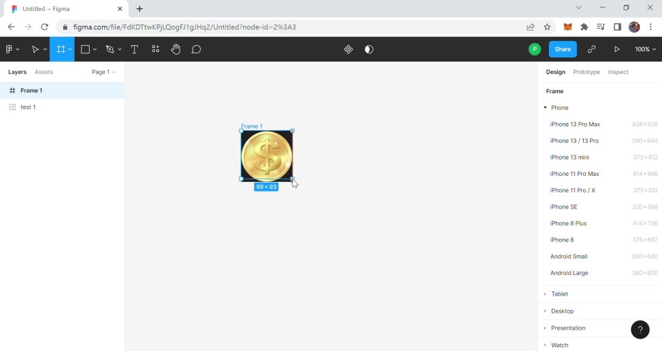 여기서 중요한 점은 이미지 파일이 생성된 Frame 1 안으로 넣어져야 합니다.