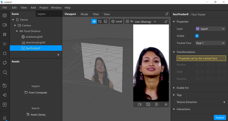 이전 단계인 [step1]에서는 인스타그램 필터를 만들기 위한 sparkARstudio를 다운로드하고 설치한 후, 얼굴 방향을 인식할 수 있는 facetracker를 추가하였습니다.
